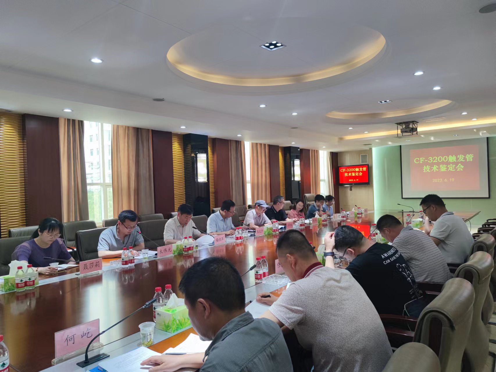 6月19日,公司自主研發(fā)的CF-3200觸發(fā)管(冷陰極觸發(fā)管)技術(shù)鑒定會(huì)順利召開。由外單位專家和本公司專家組成的技術(shù)鑒定組,現(xiàn)場(chǎng)測(cè)試了CF-3200觸發(fā)管,并審查了技術(shù)資料,一致同意該管通過(guò)技術(shù)鑒定。