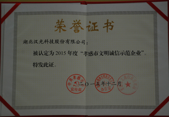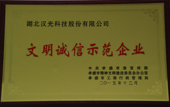 企業(yè)資訊 我公司榮獲孝感市2015年“文明誠(chéng)信示范企業(yè)”榮譽(yù)稱號(hào)