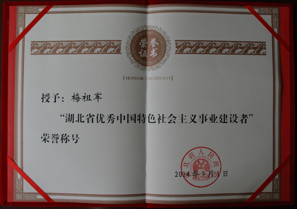 2014年7月23日,省政府在武漢東湖賓館隆重召開(kāi)第三屆湖北省優(yōu)秀中國(guó)特色社會(huì)主義事業(yè)建設(shè)者表彰大會(huì),公司董事長(zhǎng)梅祖軍獲得此榮譽(yù)稱(chēng)號(hào)。