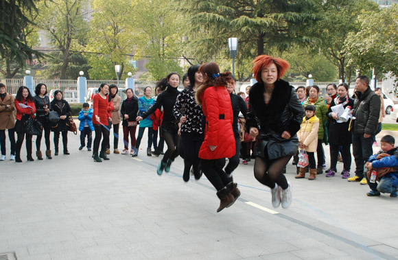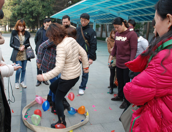 今年的比賽項(xiàng)目除了保留的兩人三足跑、端乒乓球接力、車輪滾滾、背運(yùn)氣球和跳繩外,還增添了踩氣球比賽,受到大家歡迎,共有15個(gè)隊(duì)參加踩氣球比賽。五顏六色的氣球在女工們的腳下噼哩叭啦炸響,將比賽氣氛推向高潮。